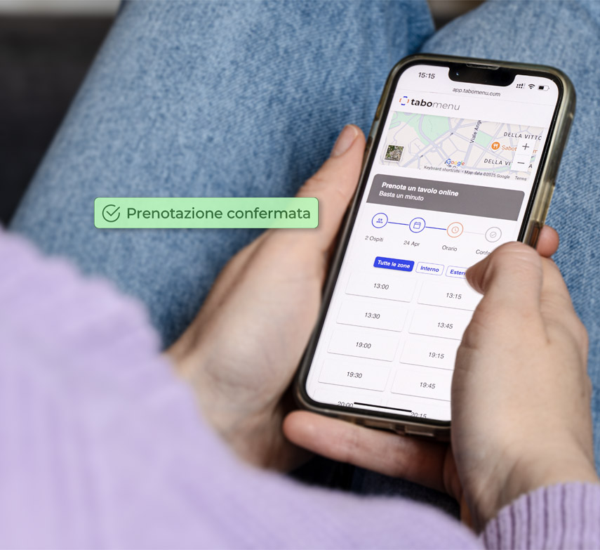 Prenotazioni online e sul Gestionale Smart, con conferma immediata in base alla disponibilità e integrazione con Google inclusa. Aumenta i coperti e riduci al minimo i no-show.