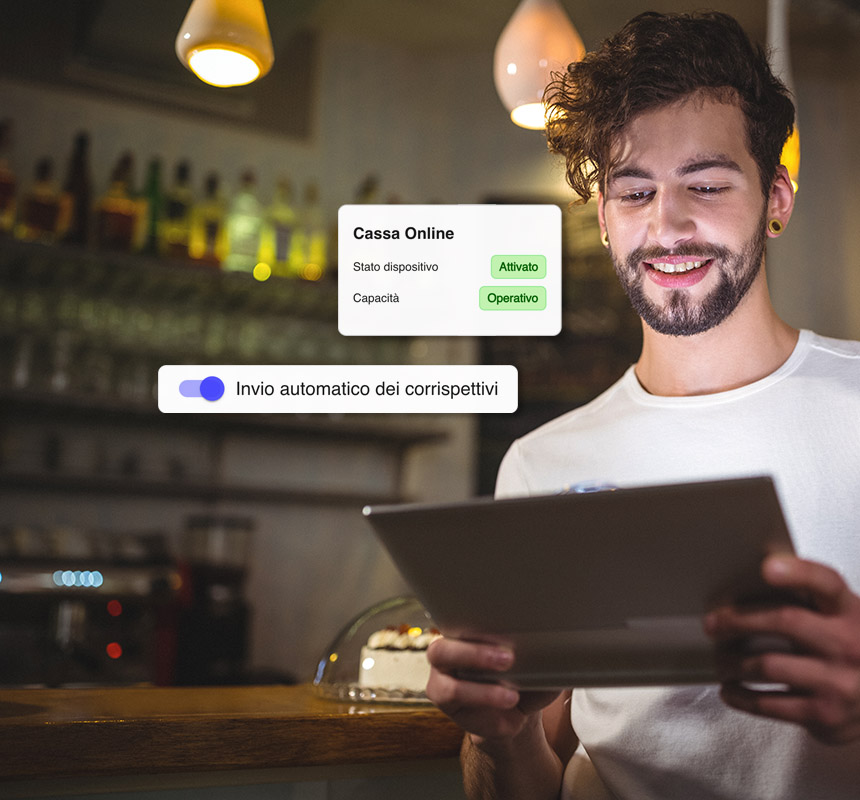 Approfitta della transizione digitale e gestisci i documenti commerciali direttamente nell'app. Con l'invio dei corrispettivi automatico, non serve più il registratore di cassa. Basta una connessione a internet.
